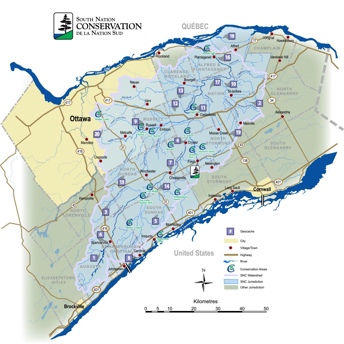 - If you find 15 of the 20 hidden caches, you are eligible to receive a South Nation Conservation geocoin. To claim your geocoin, please mail, fax, email or drop off the completed form to: