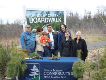 May 5, 2014 – Celebrating the provincially significant Leitrim Wetland and the 1,000-foot cedar boardwalk that extends part way into it, South Nation Conservation held a tree and shrub giveaway in Findlay Creek Village last Saturday (May 3).