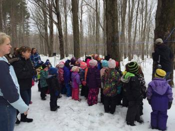 Guided by SNC interpreters, pre-booked K-12 school groups enjoy a leisurely hike through the sugar bush while learning how maple syrup makes it from the tree to your breakfast table. The bilingual program is offered March 7th through April 7th, and interested schools must book their visits with SNC in advance. Tours are also available for adult groups. The Sand Road log cabin remains open to all visitors even while tours are being conducted.