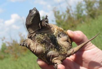 “If you must move a turtle for its safety, never drag it or pick it up by its shell, tail or limbs,” says Paquette. “It’s best to pick up a turtle using both hands, one on each side of its body, between its front and back legs, and to bring it into the direction that it’s headed.”